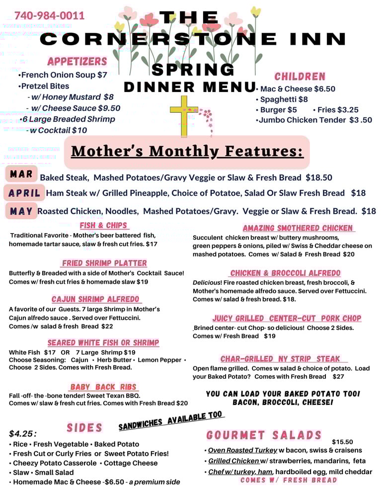 The Vision of the Cornerstone was a Divine Inspiration where, the Lord desires the Sacredness and the tradition of the Table to return where families and friends gather to eat, laugh, and love where Godās good grace and great love abounds. We need to take time and look into each otherās eyes across the table instead of through text messages and incomplete conversations. Jesus said only three things last- Faith, Hope and Love, and the greatest of these is Love.
